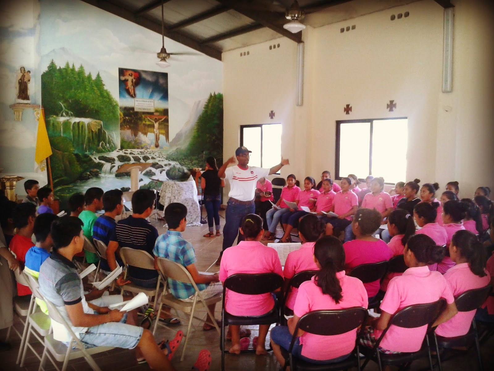 Aquí vemos una imagen del último ensayo que tuvimos el domingo en la capilla.